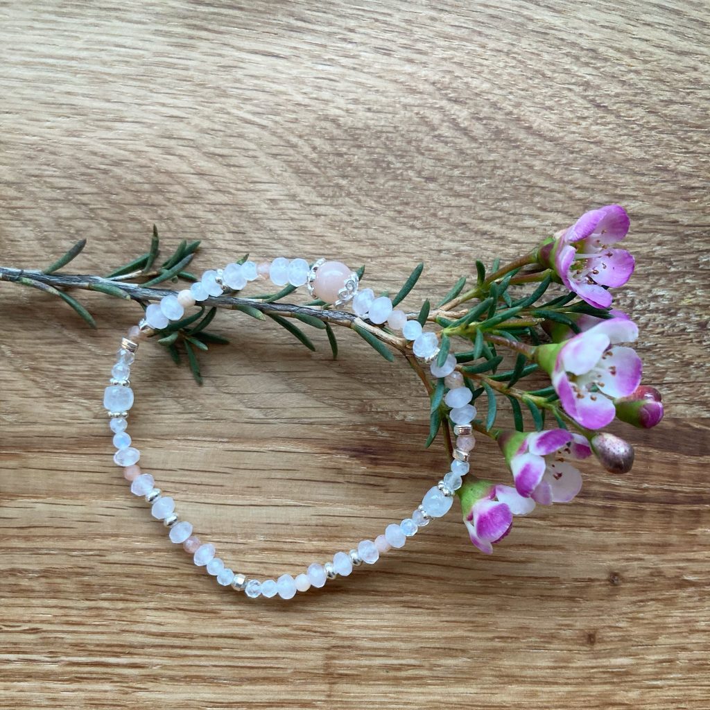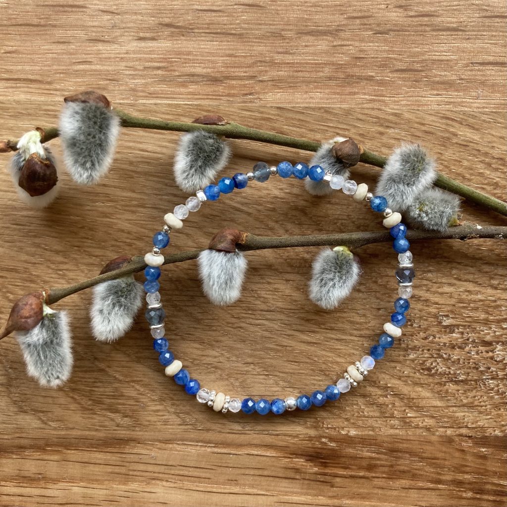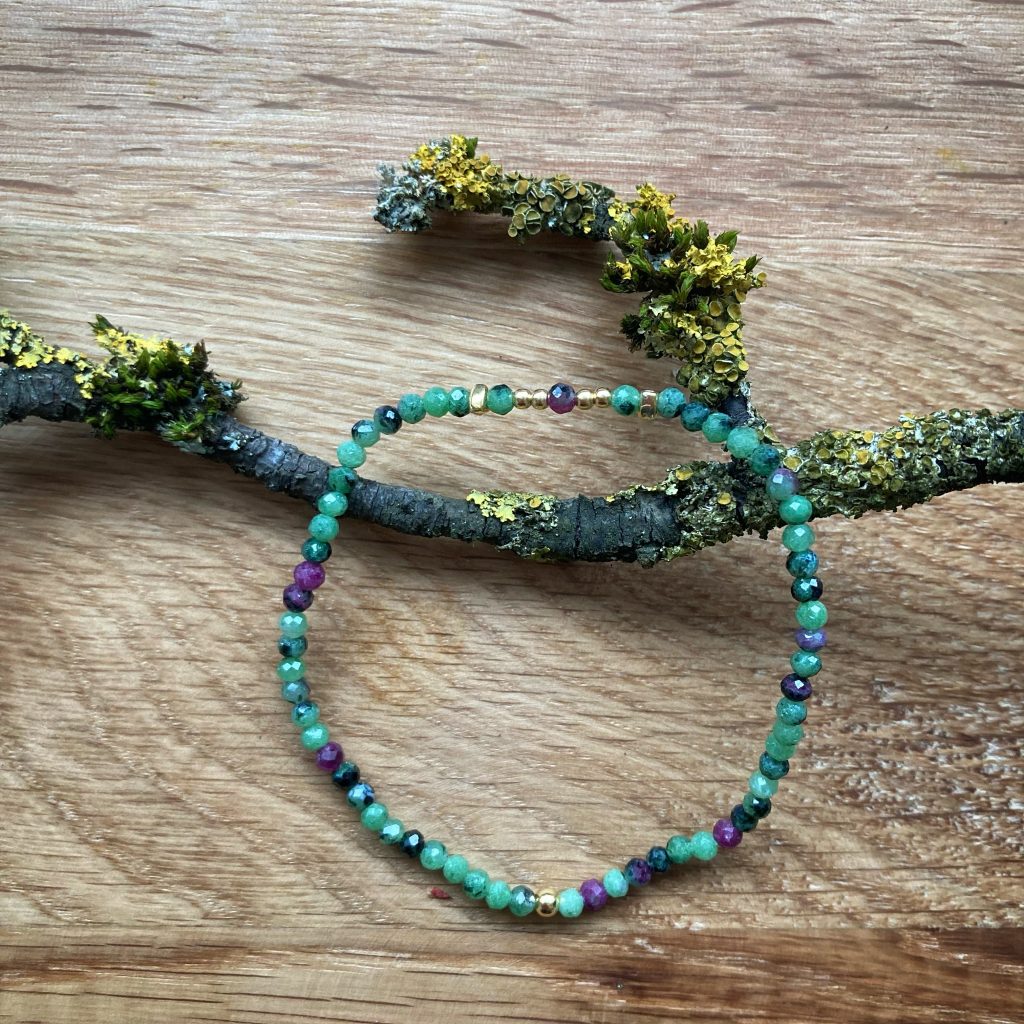 Nach deiner Vorgabe verwende ich Draht, Faden oder Schmuckelastik. Abgerundet wird dein Schmuckstück mit ausgesuchten Gold- oder Silberelementen, um dein Funkelarmband und seinen Schimmer so richtig zur Geltung zu bringen.